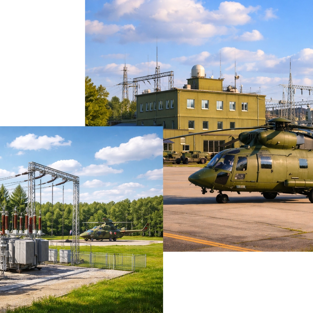 Realizujemy kompleksowe projekty elektroenergetyczne dla sektora obronnego i strategicznego – z zachowaniem najwyższych standardów bezpieczeństwa, pełnej poufności i zgodności z wymogami wojskowymi.